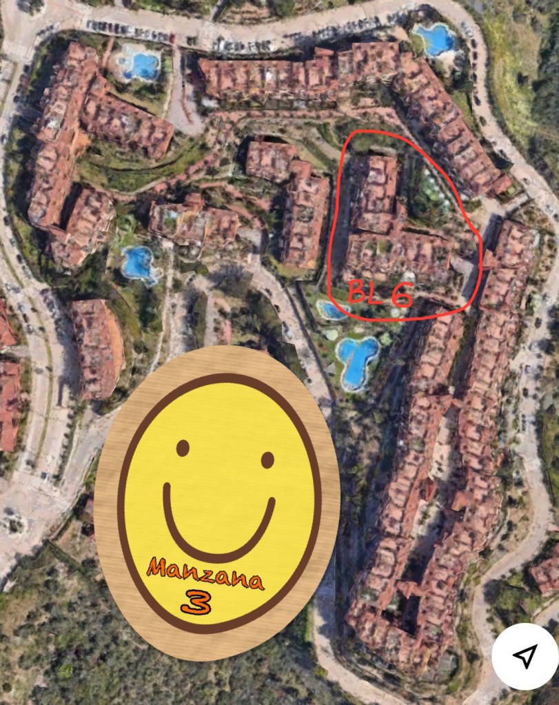 El Bloque 6 tiene una forma de L y su situación física en la Manzana 3 es justo por encima de las 2 piscinas y 3 jacuzzis de la parte sur del conjunto.